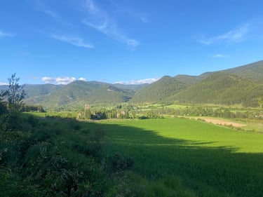 Las 23 hectáreas de terreno se encuentran a 20 minutos (norte) del Parque Natural de los Valles Occidentales y a 25 minutos (este) de la ciudad de Jaca. Monasterio dispone de aproximadamente 14 hectáreas de bosque propio con caminos y sendas transitables con un pequeño manantial en el centro. Dentro del bosque, encontraremos zonas designadas para la meditación y la relajación, así como otras para acampar y disfrutar de la experiencia de dormir en el bosque con cielos abiertos. Las estrellas nos regalan un espectáculo inolvidable cada noche.