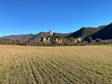 En la parte llana del terreno, de unas 9 hectáreas, se encuentran las ruinas del Monasterio del Pilar de Embún, que originalmente era una pequeña Ermita construida alrededor del año 1600 (aun conservada). El monasterio, declarado Patrimonio de la Humanidad, está rodeado de relatos místicos y es bien sabido que su ubicación no fue elegida al azar, sino por el particular campo energético que lo rodea. Justo frente al Monasterio se encontrarán las cabañas donde se alojarán los huéspedes y el Duomo principal, donde se realizarán algunas de las actividades.