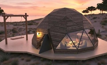 De las 10 Duomos habitacionales, 5 tendrán capacidad para un máximo de 3 personas y las otras 5 para un máximo de 2 personas. Todas contarán con baño privado, cocina totalmente equipada, chimenea de leña y funcionarán con energía solar.