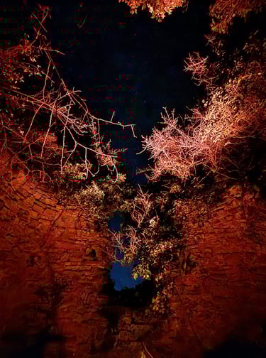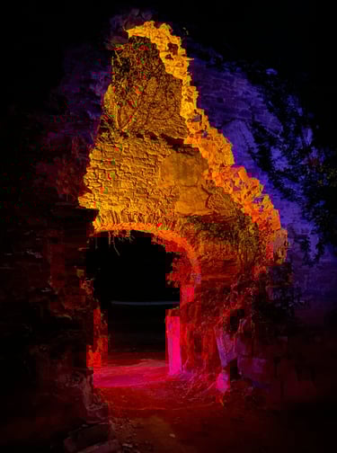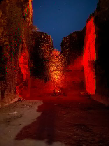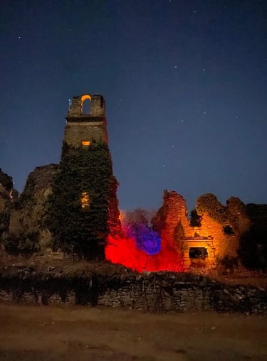 Aqui encontramos una prueba lumínica de la mano de gran artista Nacho Arategui. Con el estamos preparando y probando Monasterio, para la realización de veladas artísticas, con músicos, bailarines y muchas cosas mas que se descubrirán los dias que esta experiencia única este disponible.